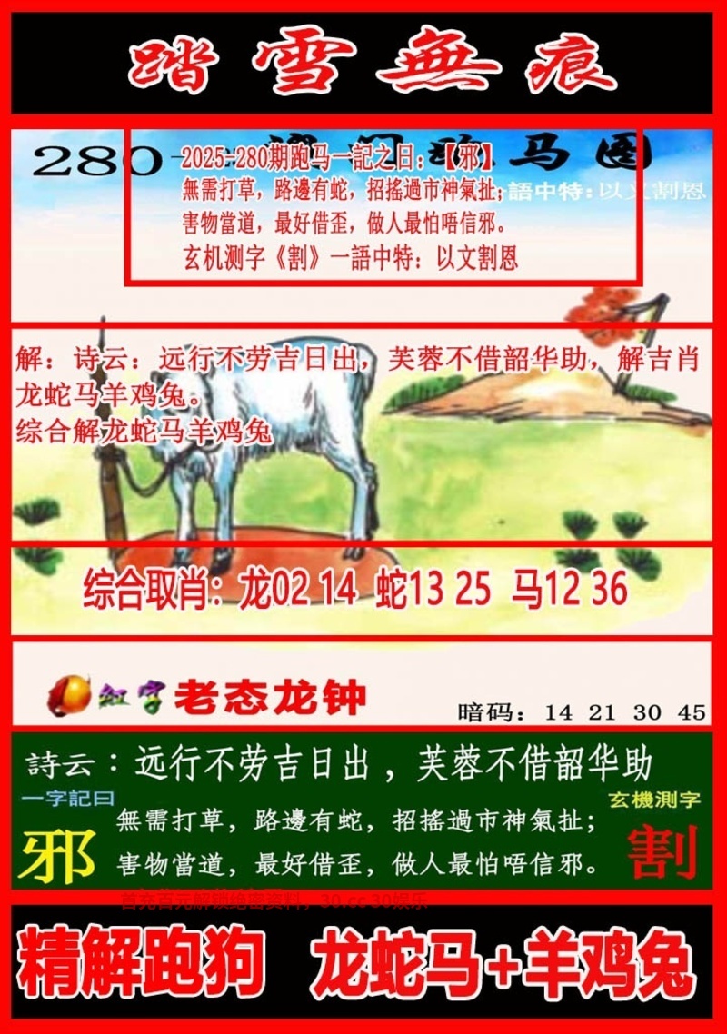 444329.com『独解跑马测字玄机』澳彩预测